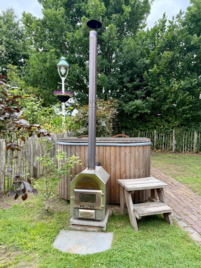 Zit- en loungegedeelte in de volledig omheinde privétuin incl tafeltennistafel, hangmat, vuurplek, barbecue.